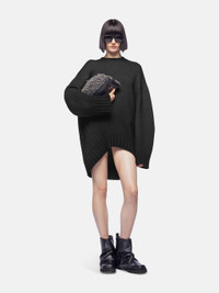 Sweater oversized in black jacquard merino wool with curved hem roundneck with ribbed cuffs, hem and collar color matching rubber label at center back. Made in Romania. Style 248WCA360KW046100 SIZE & FIT The model is wearing a size 40 and her height is 69,6 in, bust 30,7 in, waist 23,2 in, hips 34,6 in - height 177 cm, bust 78 cm, waist 59 cm, hips 88 cm. Regular fit. We recommend taking your true size. DETAILS Main material: 70% wool 30% cashmere