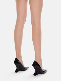 'Cheope'' pump in black patent leather with pyramid wedge, height 105mm. Made in Italy. Style 231WS509L002100 SIZE & FIT The model is wearing a size 39. DETAILS Main leather: 100% calf leather dyed, bos taurus farm raised coo: East Europe, insole and lining: 100% goat leather dyed, capra hircus farm raised coo: India, sole: 100% bovine leather dyed, bos taurus farm raised coo: Germany, heel 105mm.