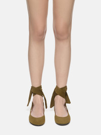 ''Cloe'' ballerina flat in military green suede. Made in Italy. Style 251WSH00793LBT007AA828 SIZE & FIT Model wears size 39 DETAILS Main leather: 100% goat leather dyed, capra hircus hircus raised coo: Africa, insole and lining: 100% goat leather dyed, capra hircus hircus raised coo: India, sole: 100% bovine leather dyed, bos taurus farm raised coo: Europe.