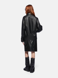 Eliza'' shirt in black soft nappa leather with shaped split. Made in Italy. Style 250WCB00074LBT129AA100 SIZE & FIT The model is wearing a size 40 and her height is 69,6 in, bust 30,7 in, waist 23,2 in, hips 34,6 in - height 177 cm, bust 78 cm, waist 59 cm, hips 88 cm. Regular fit. We recommend taking your true size. DETAILS Main Material: 100% Lamb Leather Ovis Aries Aries, farm raised,coo: Tunisia