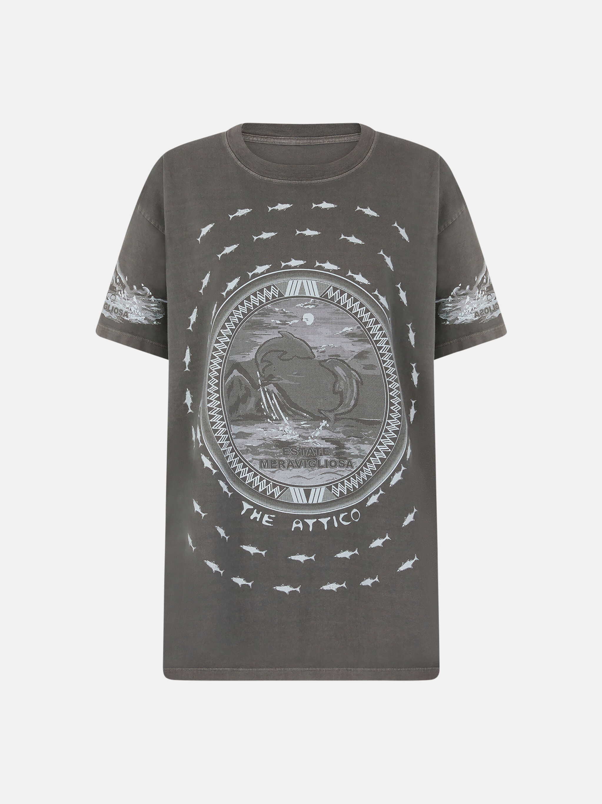 T-shirt in faded black dolphin print. Made in Portugal. Style 250WCT00353JJJ059PR615 SIZE & FIT The model is wearing a size 40 and her height is 5,10 in, bust 33 in, waist 24 in, hips 91,4 in - height 177 cm, bust 83 cm, waist 60,9 cm, hips 91,4 cm. Regular fit. We recommend taking your true size. DETAILS Main material: 100% cotton, second material: 100% cotton