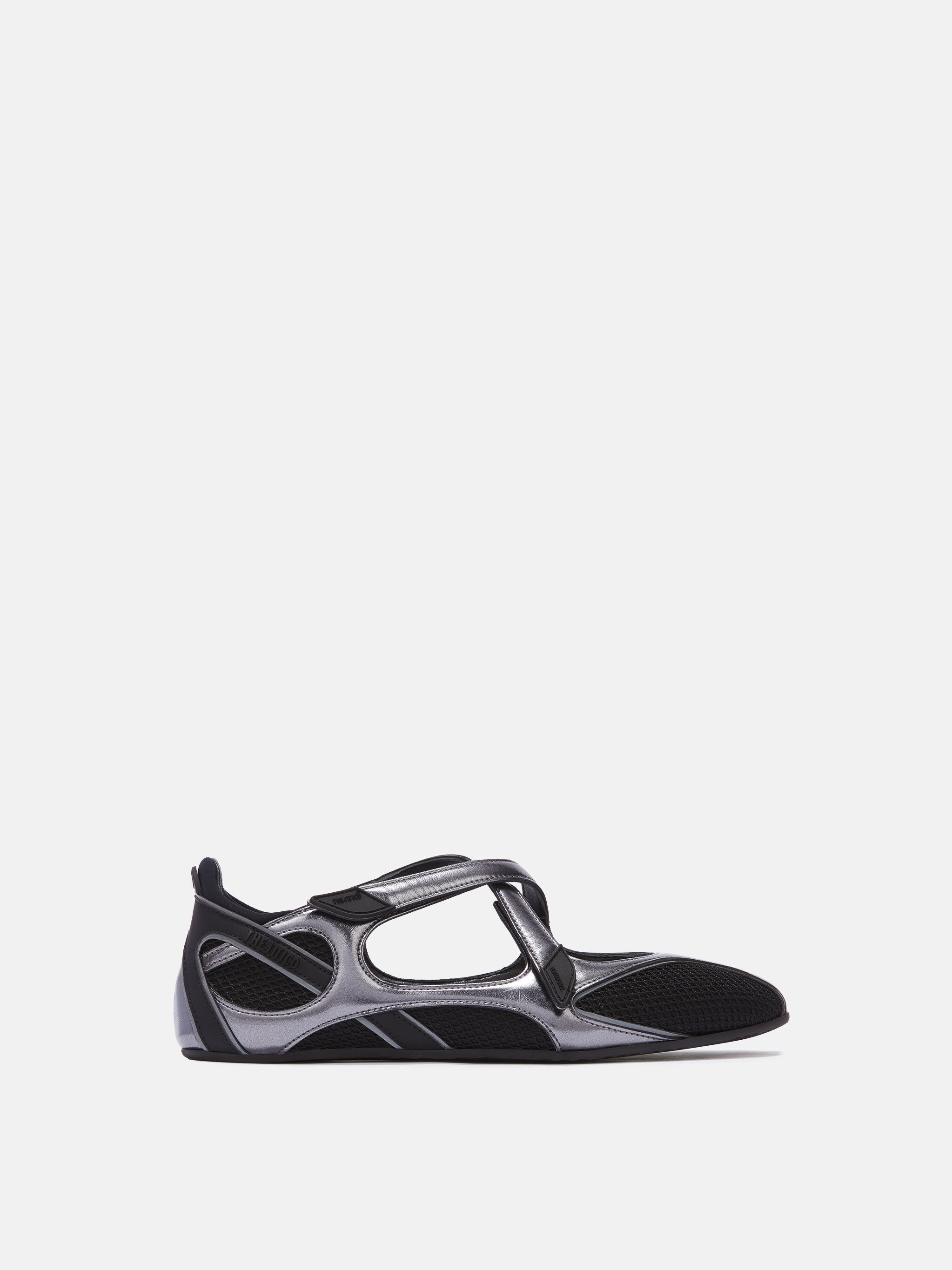 ''Floor 01'' ballerina flat in mix of black synthetic material. Made in Italy. Style 250WSH00871MIX024AA100 SIZE & FIT Model wears size 39 DETAILS Main Material: 70% polyurethane, 30% polyester, insole: 100% thermoplastic plyurethane, sole: 100% rubber.