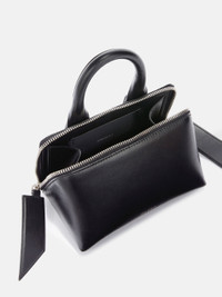 ''Friday'' mini bag in black calf leather with top handle and removable shoulder strap that doubles as a belt. Made in Italy. Style 231WAH00002LBT019AA100 SIZE & FIT Height 7,9 inch, width 7,09 inch, depth 4,3 inch - Height 20 cm, width 18 cm, depth 11 cm DETAILS Main Leather: 100% calf bos taurus farm raised coo: USA, lining: 51% polyurethane, 49% (70% cotton 30% polyester), inside pocket: 100% calf bos taurus farm raised coo: USA.
