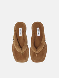 ''Indie'' flat thong in pale brown suede. Made in Italy. Style 250WSH00797LBT007AA994 SIZE & FIT Model wears size 39. DETAILS Main leather: 100% goat leather dyed, capra hircus farm raised coo: Africa, insole and lining: 100% goat leather dyed, capra hircus hircus farm raised coo: India, sole: 100% thermoplastic polyurethane, heel flat.