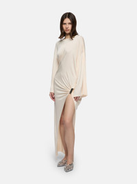 Midi dress in ivory shiny jersey. Made in Italy. Style 251WCW00244VVV107AA507 SIZE & FIT The model is wearing a size 40 and her height is 70 in, bust 31,1 in, waist 24 in, hips 34,6 in - height 178 cm, bust 79 cm, waist 61 cm, hips 88 cm. Regular fit. We recommend taking your true size. DETAILS Main material: 100% viscose