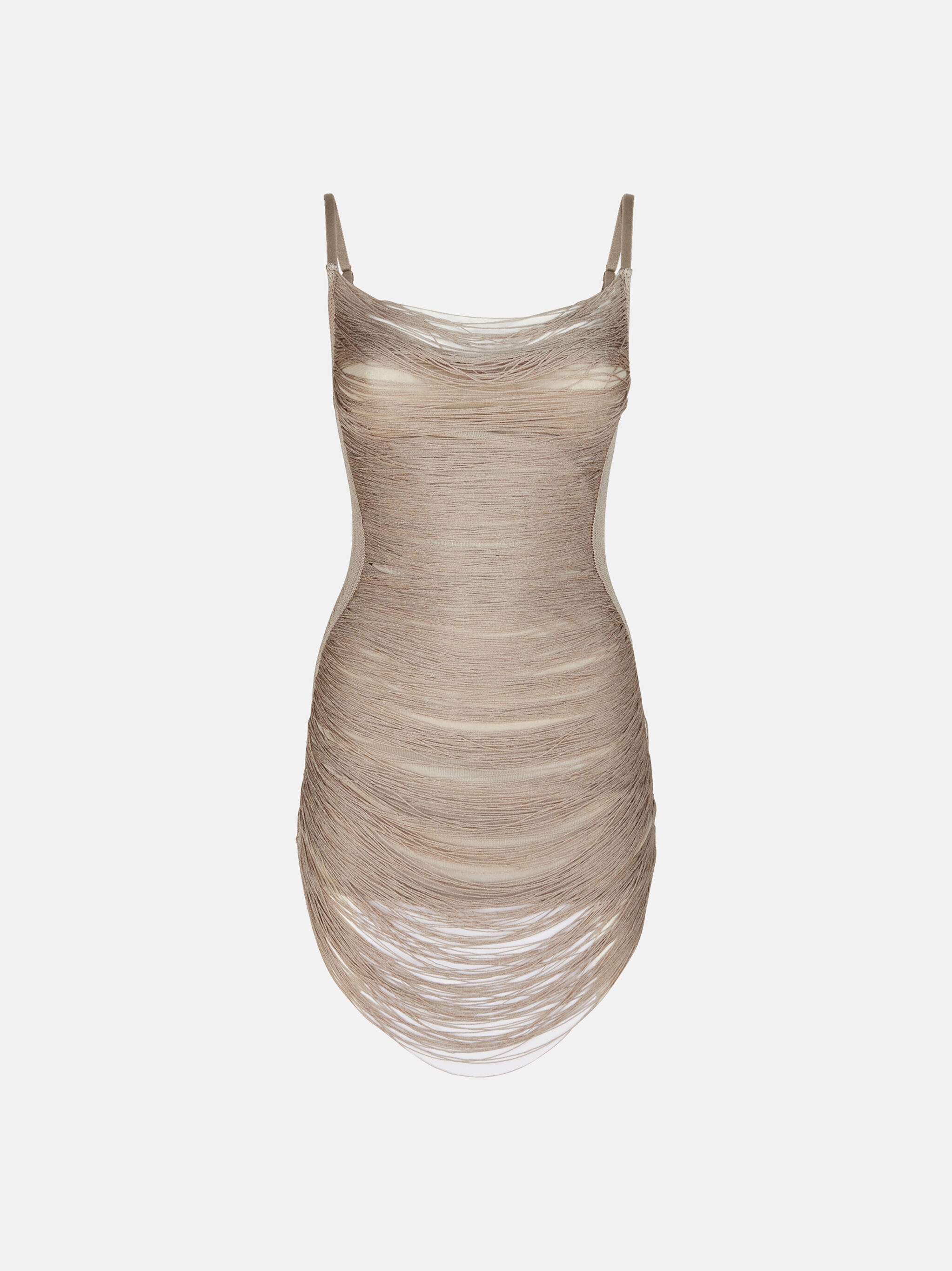 Mini dress in silver viscose fringes. Made in Italy. Style 251WCA00441KVV016AA002 SIZE & FIT The model is wearing a size 40 and her height is 70 in, bust 31,1 in, waist 24 in, hips 34,6 in - height 178 cm, bust 79 cm, waist 61 cm, hips 88 cm. Regular fit. We recommend taking your true size. DETAILS Main material: 83% viscose 17% polyamide, second material: 87% cotton 13% polyamide