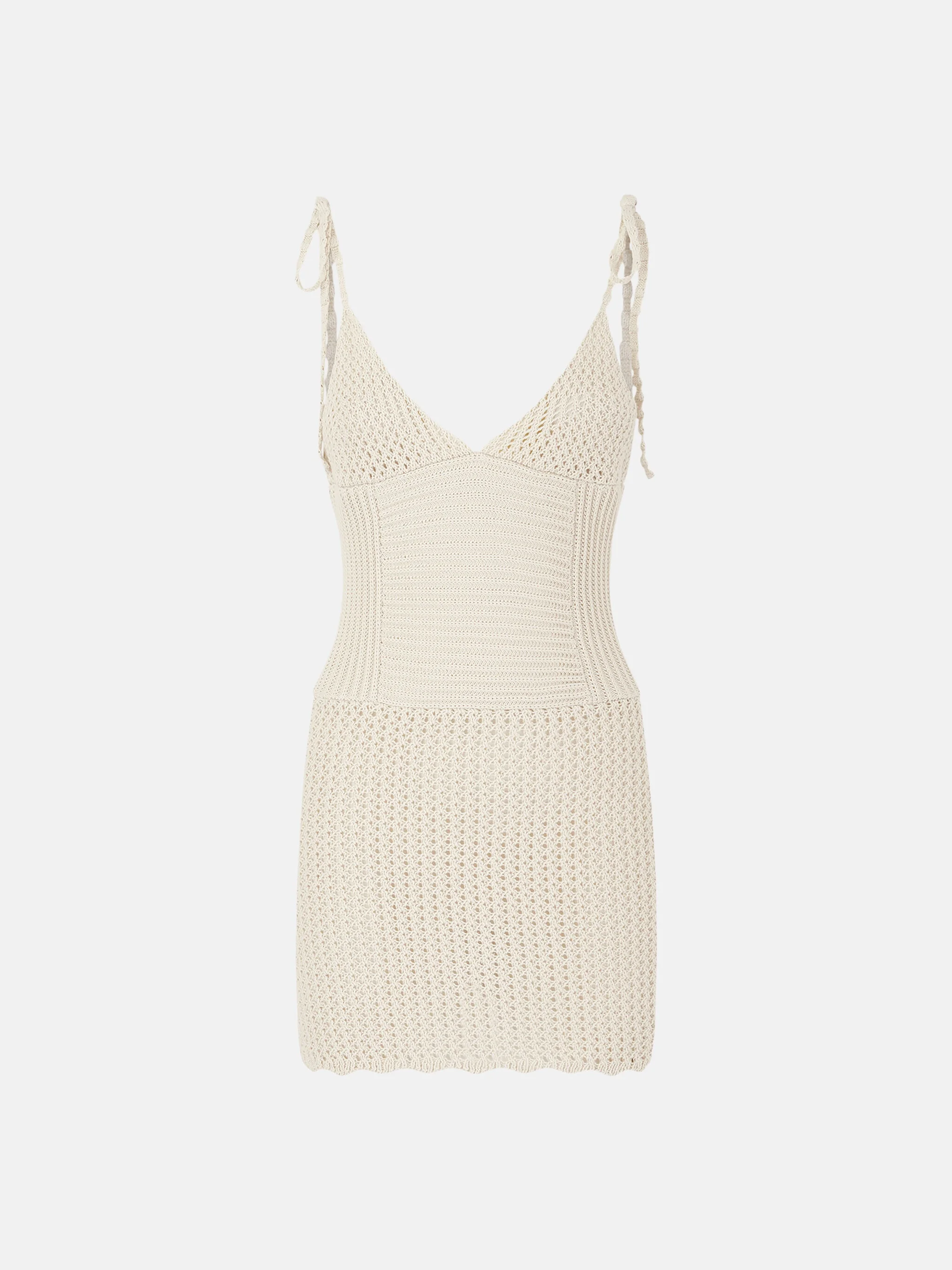 Mini dress in off white openwork stitch striped rib. Made in Italy. Style 250WCA00417CCC105AA556 SIZE & FIT The model is wearing a size 40 and her height is 5,10 in, bust 33 in, waist 24 in, hips 91,4 in - height 177 cm, bust 83 cm, waist 60,9 cm, hips 91,4 cm. Regular fit. We recommend taking your true size. DETAILS Main material: 100% cotton