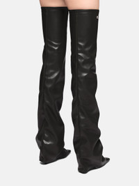 ''Robin OTK'' thigh high in black synthetic leather, heel height 99mm. Made in Italy. Style 250WSH00872PUR003AA100 SIZE & FIT Model wears size 39. DETAILS Main fabric: 55% polyurethane, 45% polyester, insole and lining: 100% goat leather dyed, capra hircus hircus farm raised coo: India, sole: 100% bovine leather dyed, bos taurus farm raised coo: Western Europe, heel 95mm.