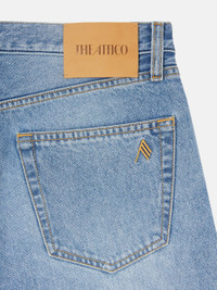 Long pants in sky blue washed denim with long criped leg and fifth pocket. Made in Italy. Style 250WCP00214DDD085AA024 SIZE & FIT The model is wearing a size 40 and her height is 69,6 in, bust 30,7 in, waist 23,2 in, hips 34,6 in - height 177 cm, bust 78 cm, waist 59 cm, hips 88 cm. Regular fit. We recommend taking your true size. DETAILS Main Material: 100% cotton, lining: 65% polyester 35% cotton