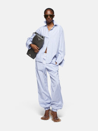 Long pants in white and navy blue striped cotton with wide leg and elastic at the bottom. Made in Italy. Style 250WCP00257CCC051AA870 SIZE & FIT The model is wearing a size 40 and her height is 69,6 in, bust 30,7 in, waist 23,2 in, hips 34,6 in - height 177 cm, bust 78 cm, waist 59 cm, hips 88 cm. Regular fit. We recommend taking your true size. DETAILS Main Material: 100% cotton