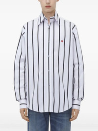 THIS WHITE COTTON SHIRT FEATURES A FRONT BUTTON FASTENING, LONG SLEEVES, AND A CURVED HEM. THE SHIRT ALSO INCLUDES A LOGO PRINT AT THE CHEST. MADE WITH SOFT AND BREATHABLE COTTON, THIS SHIRT IS BOTH STYLISH AND COMFORTABLE. PERFECT FOR ANY OCCASION, IT'S AN ESSENTIAL ADDITION TO ANY WARDROBE.
