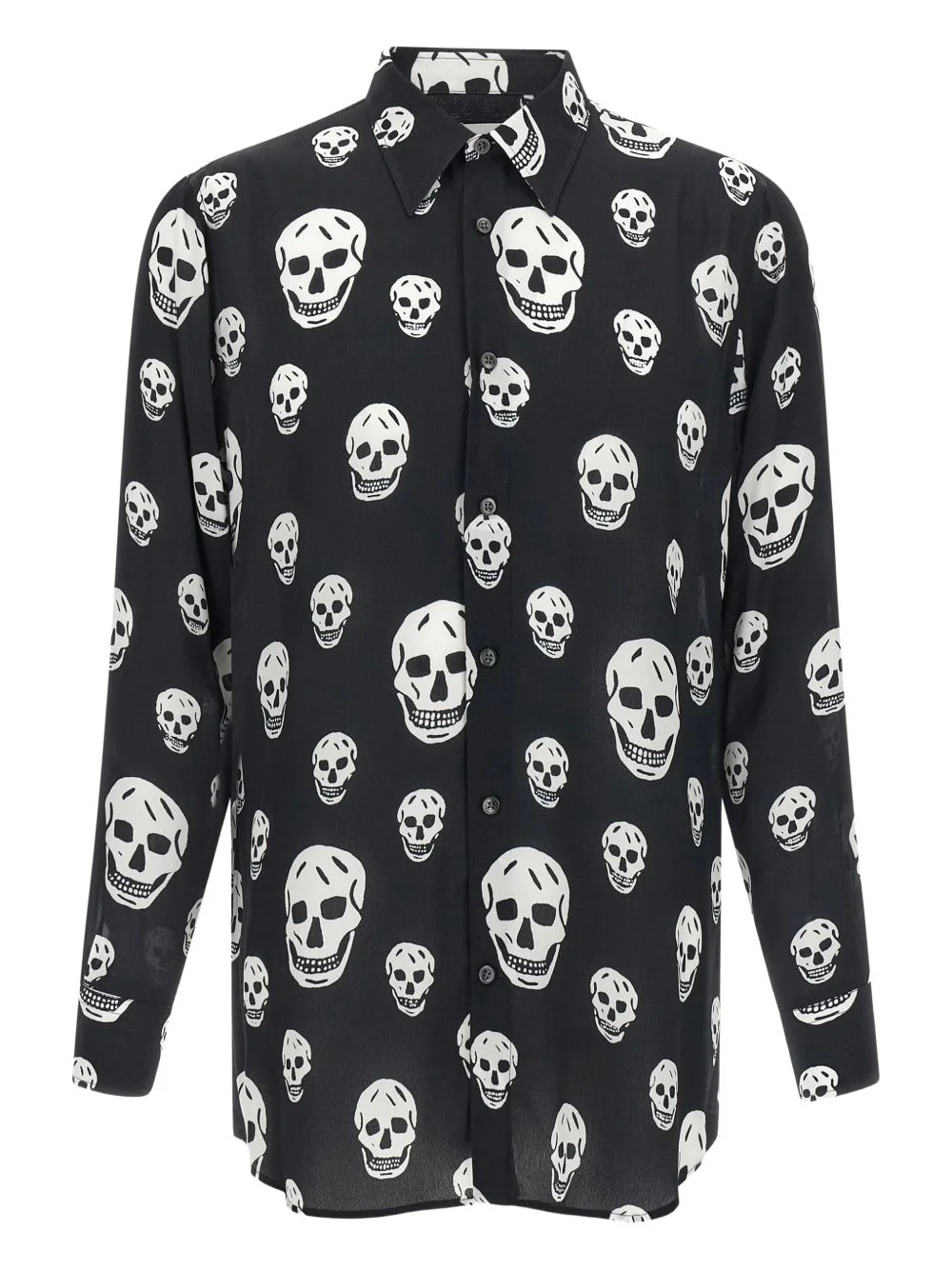 THIS SOPHISTICATED SHIRT MERGES GRAPHIC BOLDNESS WITH REFINED TAILORING. THE STRIKING WHITE AND BLACK SKULL PRINT CREATES VISUAL DEPTH WHILST MAINTAINING A CONTEMPORARY EDGE. LONG SLEEVES PROVIDE VERSATILITY ACROSS SEASONS, WHILST BUTTON CLOSURE ALLOWS FOR EFFORTLESS LAYERING AND STYLING FLEXIBILITY. THE MONOCHROMATIC PALETTE ENSURES THIS PIECE COORDINATES SEAMLESSLY WITH EXISTING WARDROBE ESSENTIALS. AN INVESTMENT PIECE THAT DELIVERS BOTH STATEMENT-MAKING PRESENCE AND PRACTICAL WEARABILITY FOR THE DISCERNING DRESSER.