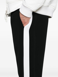THESE STRIPED TRACK PANTS ARE CRAFTED WITH A BLACK/WHITE CADY TEXTURE AND FEATURE A CONCEALED FLY AND BUTTON FASTENING, AS WELL AS A CONTRASTING WAISTBAND AND SIDE STRIPE DETAILING. THE ELASTICATED WAISTBAND PROVIDES A COMFORTABLE FIT, AND THE PANTS ALSO FEATURE TWO SIDE INSET POCKETS AND TWO REAR WELT POCKETS. THE TAPERED LEG ADDS A TOUCH OF STYLE TO THESE VERSATILE PANTS.