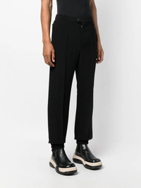 TAILORED TRACK PANTS FROM ALEXANDER MCQUEEN FEATURING BLACK, FRONT BUTTON AND ZIP FASTENING, BELT LOOPS, PLEAT DETAILING AND ELASTICATED CUFFS.
