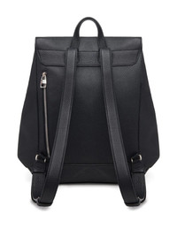 BLACK CALF LEATHER PEBBLED TEXTURE SILVER-TONE HARDWARE LOGO-ENGRAVED SILVER-TONE HARDWARE INTERNAL LOGO PATCH FOLDOVER TOP WITH PRESS-STUD FASTENING SINGLE FLAT TOP HANDLE ADJUSTABLE SHOULDER STRAPS MAIN COMPARTMENT REAR ZIP-FASTENING POCKET