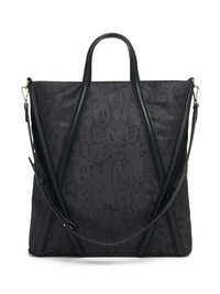 BLACK LEATHER SILVER-TONE HARDWARE SILVER-TONE LOGO LETTERING GRAFFITI PRINT CONCEALED MAGNETIC FASTENING TWO ROLLED TOP HANDLES ADJUSTABLE DETACHABLE SHOULDER STRAP INTERNAL ZIP-FASTENING POCKET MAIN COMPARTMENT
