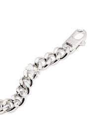 ENHANCE YOUR OUTFIT WITH OUR LOGO NECKLACE. THE SILVER-TONE DESIGN AND LOBSTER CLAW FASTENING PROVIDE A SECURE AND STYLISH OPTION. THE CURB CHAIN AND POLISHED FINISH ADD A TOUCH OF ELEGANCE. ELEVATE YOUR LOOK WITH THIS TIMELESS PIECE.