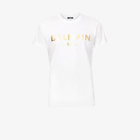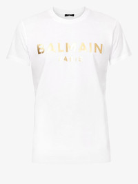 OFA BLANC GOLD FOIL LOGO SHORT SLEEVE T-SHIRT FROM BALMAIN.