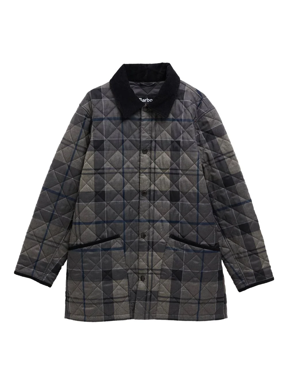 THIS TARTAN QUILTED JACKET MERGES HERITAGE PATTERN WITH CONTEMPORARY CONSTRUCTION. THE GREY BASE WITH TARTAN DETAILING CREATES VISUAL INTEREST, WHILE QUILTED PADDING PROVIDES INSULATION AND STRUCTURE. A DISTINCTIVE CORDUROY COLLAR ADDS TEXTURAL CONTRAST AND REFINED DETAIL. FRONT BUTTON FASTENING ALLOWS EASY LAYERING, AND TWO FRONT POCKETS DELIVER PRACTICAL STORAGE. AN EXPERTLY CRAFTED PIECE THAT ELEVATES CASUAL OUTFITS WITH UNDERSTATED SOPHISTICATION AND SEASONAL VERSATILITY.