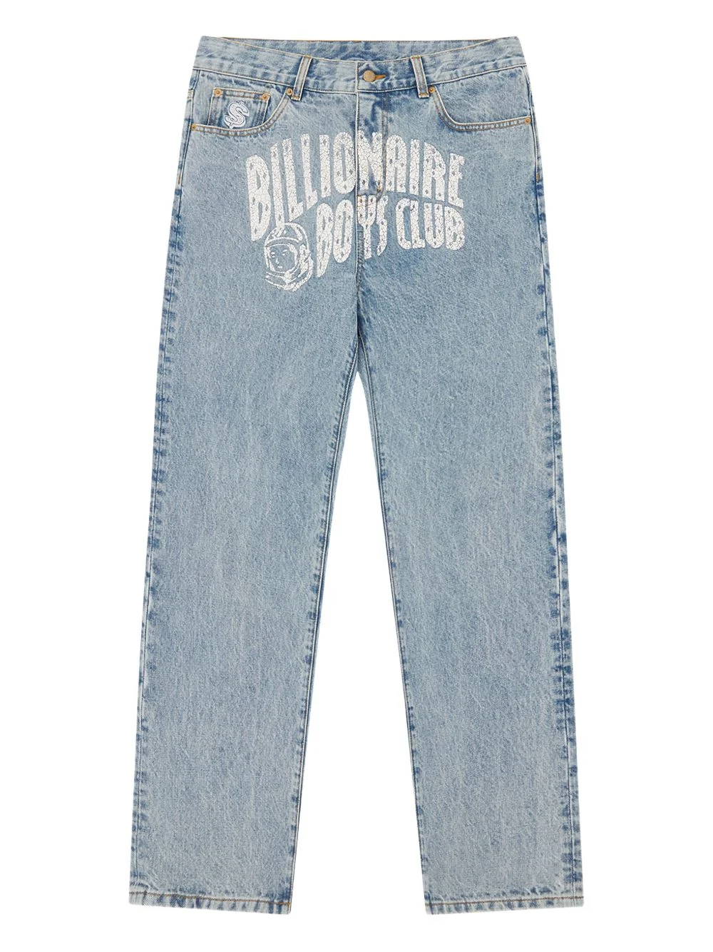THE ARCH LOGO GRAPHIC JEANS BLEND CLASSIC DENIM CONSTRUCTION WITH CONTEMPORARY BRANDING. THE LIGHT WASHED BLUE FINISH PROVIDES VERSATILE STYLING POTENTIAL ACROSS SEASONS AND OCCASIONS. A STRIKING GRAPHIC LOGO IS COMPLEMENTED BY SUBTLE EMBROIDERED DETAILING THAT ADDS DEPTH WITHOUT OVERWHELMING THE DESIGN. FIVE FUNCTIONAL POCKETS OFFER PRACTICAL STORAGE, WHILST BELT LOOPS AND BUTTON FASTENING DELIVER AUTHENTIC DENIM CONSTRUCTION AND SECURE CLOSURE. THESE JEANS TRANSITION EFFORTLESSLY FROM CASUAL WEEKENDS TO SMART-CASUAL SETTINGS, MAKING THEM AN INDISPENSABLE WARDROBE FOUNDATION FOR MODERN DRESSING.