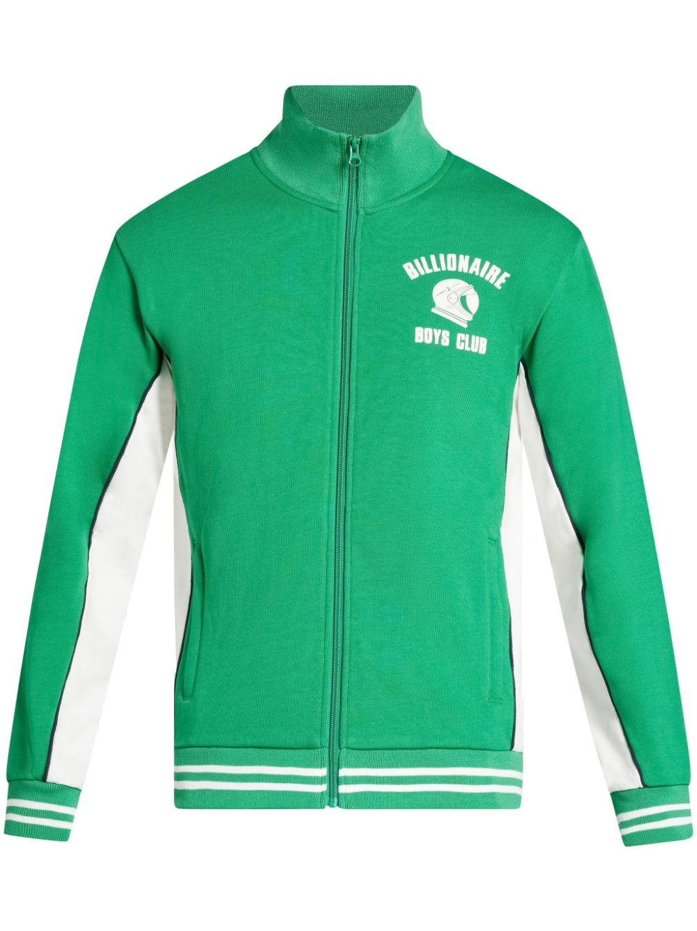 GRASS GREEN COTTON JERSEY TEXTURE LOGO PRINT AT THE CHEST LOGO PRINT TO THE REAR STAND-UP COLLAR FRONT ZIP FASTENING LONG SLEEVES RIBBED CUFFS AND HEM TWO SIDE SLIT POCKETS
