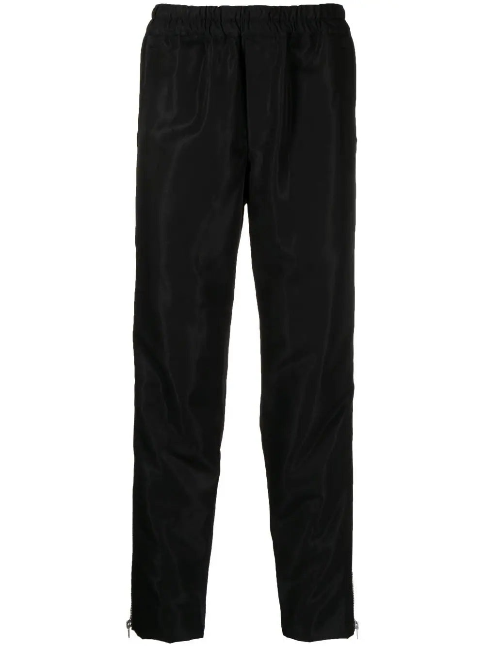 SIDE ZIP-DETAIL TROUSERS FROM BLACK COMME DES GARCONS FEATURING SHORT SIDE ZIP FASTENING, ELASTICATED WAISTBAND, TWO SIDE ZIP-FASTENING POCKETS, REAR WELT POCKET, REAR FLAP POCKET AND JET BLACK.
