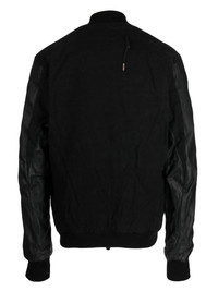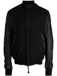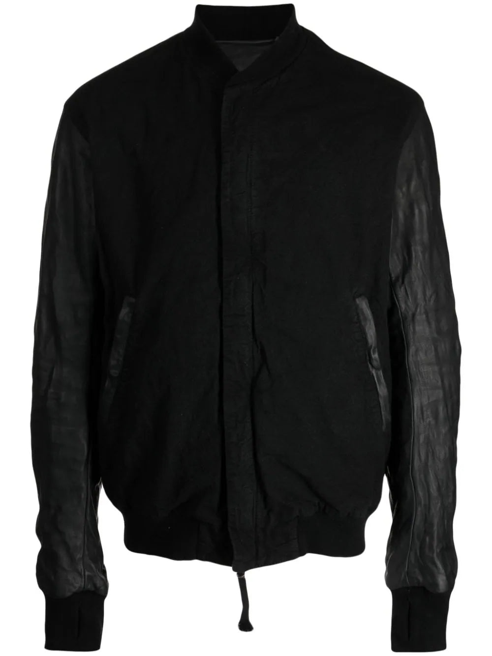 BLACK COTTON BLEND LIGHTWEIGHT CONSTRUCTION COLLARLESS CONCEALED FRONT ZIP FASTENING LONG SLEEVES TWO SIDE INSET POCKETS STRAIGHT HEM