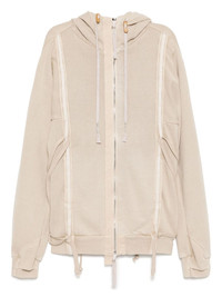 EXPERIENCE ULTIMATE COMFORT AND STYLE WITH OUR LONG-SLEEVE COTTON HOODIE. MADE WITH ECRU FRONT ZIP FASTENING, COTTON DRAWSTRING HOOD, AND RIBBED CUFFS AND HEM, THIS HOODIE PROVIDES A PERFECT FIT FOR EVERYDAY WEAR. STAY WARM AND TRENDY WITH THIS VERSATILE ADDITION TO YOUR WARDROBE.