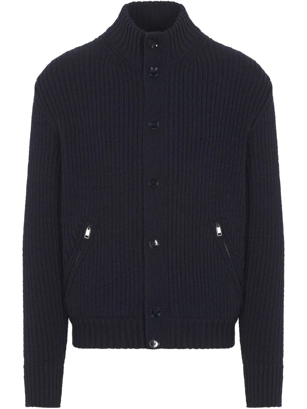 THIS CHUNKY-KNIT CARDIGAN IN NAVY BLUE OFFERS WARMTH AND COMFORT WITH ITS RIBBED KNIT FABRIC. THE FRONT BUTTON AND ZIP FASTENING ALLOW FOR EASY WEAR AND ADJUSTABILITY, WHILE THE TWO ZIP-FASTENING POCKETS PROVIDE CONVENIENT STORAGE. PERFECT FOR CHILLY DAYS, THIS CARDIGAN IS A VERSATILE AND STYLISH ADDITION TO ANY WARDROBE.