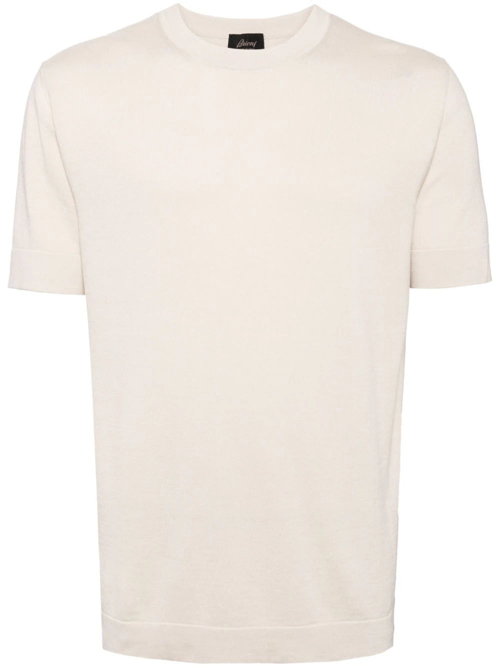 IVORY WHITE COTTON-SILK BLEND KNITTED CONSTRUCTION CREW NECK SHORT SLEEVES