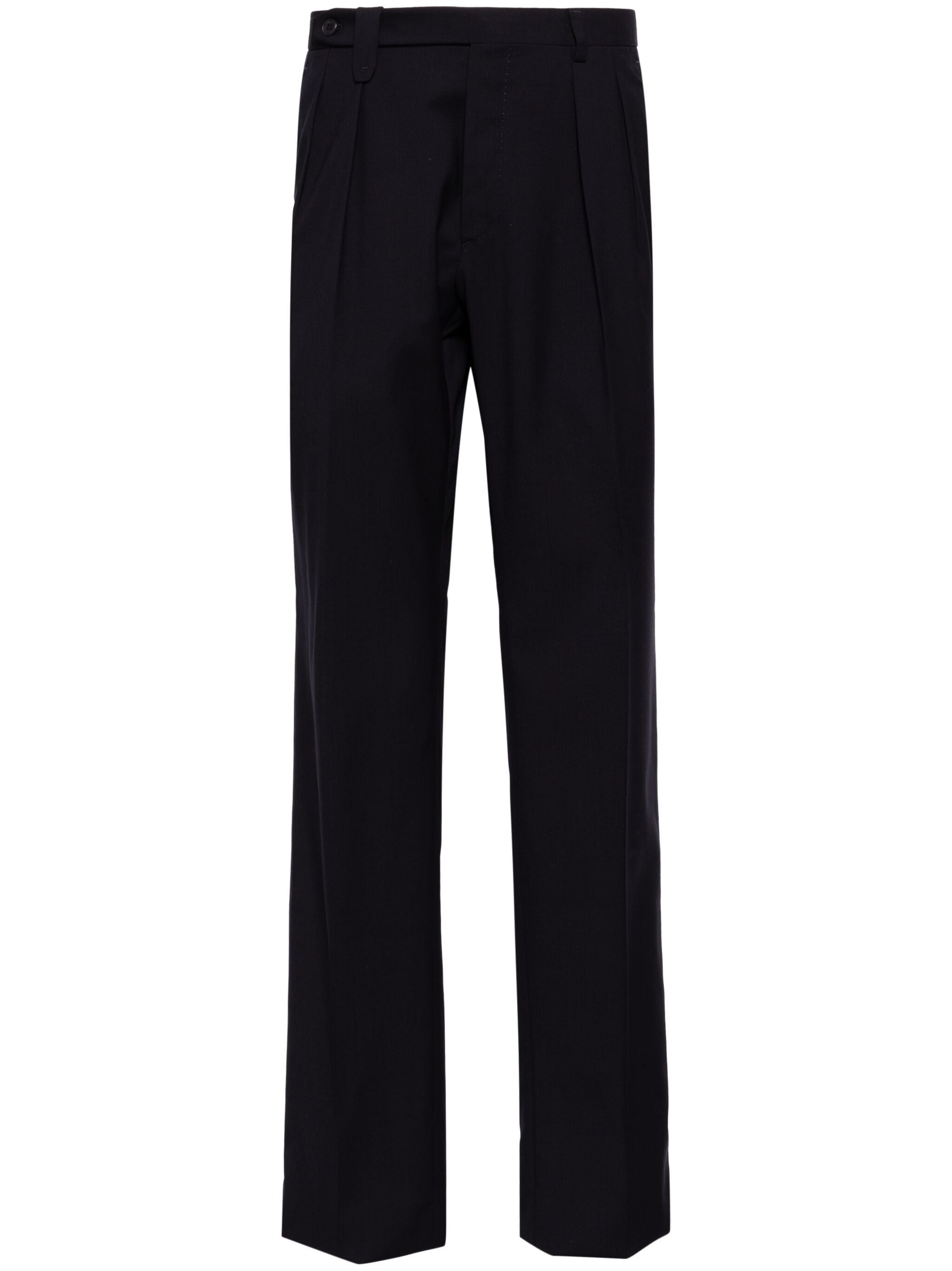 EXPERTLY CRAFTED FOR THE MODERN PROFESSIONAL, THE ELBA TROUSERS FEATURE A MIDNIGHT BLUE WOOL BLEND AND A CONCEALED FRONT BUTTON, HOOK AND ZIP FASTENING. THESE TROUSERS ALSO OFFER THE CONVENIENCE OF BELT LOOPS, TWO DIAGONAL POCKETS, AND TWO REAR BUTTON-FASTENING JETTED POCKETS. THE TAPERED LEG AND PRESSED CREASE CREATE A POLISHED LOOK, WHILE THE UNFINISHED HEM ALLOWS FOR A CUSTOMIZABLE FIT.
