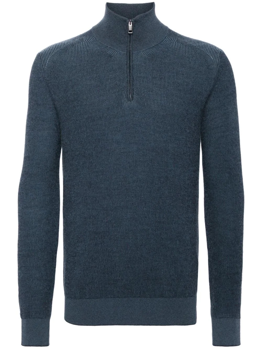 MIDNIGHT BLUE CASHMERE BLEND KNITTED CONSTRUCTION HALF FRONT ZIP FASTENING LONG SLEEVES RIBBED CUFFS RIBBED HEM