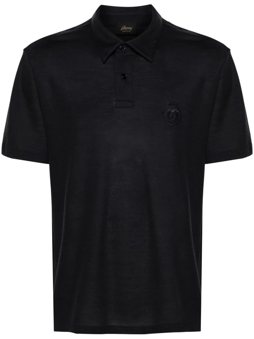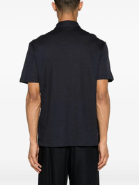 MIDNIGHT BLUE WOOL JERSEY TEXTURE EMBROIDERED LOGO AT THE CHEST POLO COLLAR FRONT BUTTON PLACKET SHORT SLEEVES SHORT SIDE SLITS STRAIGHT HEM