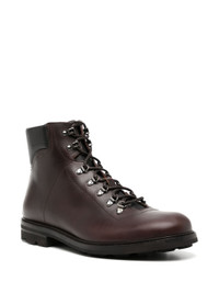EXPERTLY CRAFTED FOR OPTIMAL PERFORMANCE, OUR OILED CALF LEATHER HIKING BOOT IS THE PERFECT BLEND OF STYLE AND FUNCTIONALITY. MADE WITH WALNUT BROWN LEATHER AND EMBOSSED WITH OUR ICONIC LOGO, THESE BOOTS FEATURE METAL EYELET DETAILING AND A PADDED ANKLE FOR EXTRA SUPPORT. WITH A ROUND TOE, LACE-UP FASTENING, BRANDED LEATHER INSOLE, AND RUBBER OUTSOLE, THIS BOOT ENSURES DURABILITY AND COMFORT ON ANY OUTDOOR ADVENTURE. COMPLETE WITH A PROTECTIVE DUST BAG, THESE BOOTS ARE A MUST-HAVE FOR ANY HIKING ENTHUSIAST.
