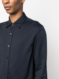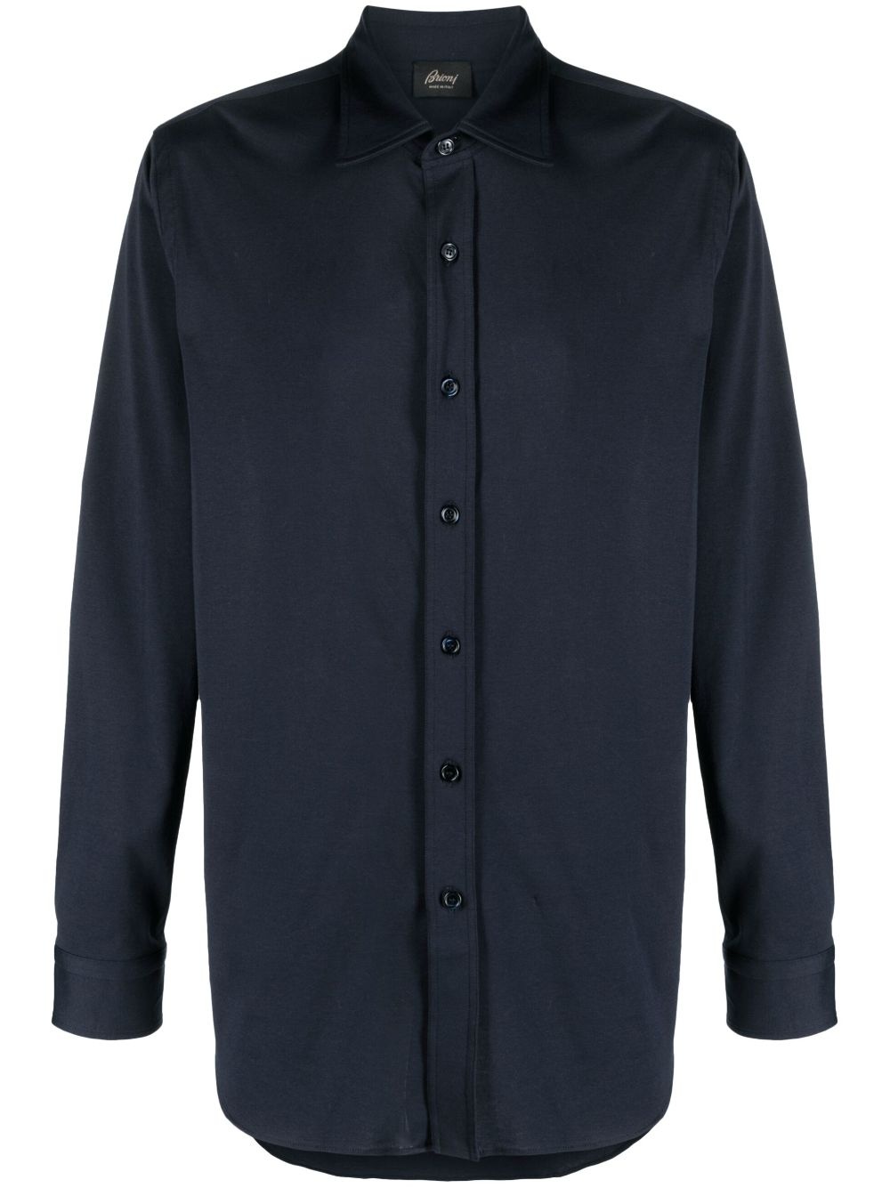 THIS NAVY BLUE COTTON SHIRT FEATURES A SPREAD COLLAR, FRONT BUTTON FASTENING, AND LONG SLEEVES WITH BUTTONED CUFFS. THE CURVED HEM ADDS A TOUCH OF STYLE AND VERSATILITY TO THIS CLASSIC PIECE. PERFECT FOR A CASUAL YET PUT-TOGETHER LOOK, THIS SHIRT IS A MUST-HAVE ADDITION TO ANY WARDROBE.