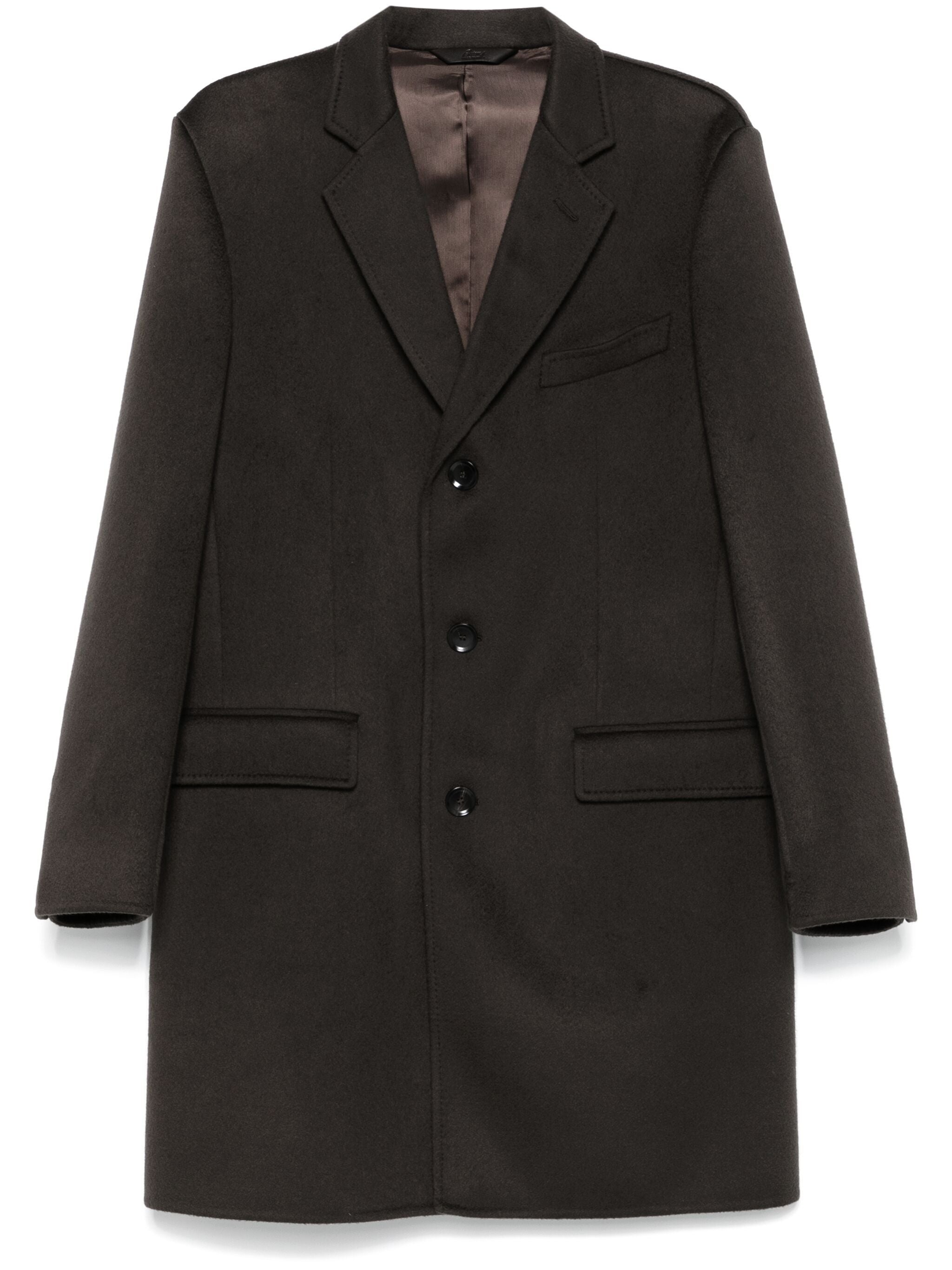STAY COZY AND STYLISH IN OUR TEXTURED COAT. MADE WITH A CEDAR BROWN WOOL BLEND, IT FEATURES A TEXTURED FINISH FOR ADDED DETAIL. THE FRONT BUTTON FASTENING, NOTCHED COLLAR, AND CHEST WELT POCKET MAKE FOR A CLASSIC LOOK, WHILE THE CENTRAL REAR VENT AND STRAIGHT HEM PROVIDE FUNCTIONALITY. PERFECT FOR ANY OCCASION.