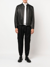 ZIP-FRONT LEATHER JACKET FROM BRIONI FEATURING OLIVE BLACK, BAND COLLAR, LONG SLEEVES, CUFF ZIPS, FRONT TWO-WAY ZIP FASTENING AND TWO SIDE ZIP-FASTENING POCKETS.