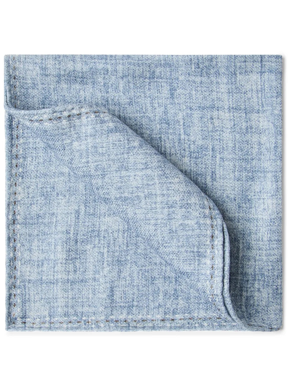 THIS SILK SQUARE POCKET FEATURES A LIGHT BLUE LOGO PRINT ON THE SIDE, ADDING A SUBTLE TOUCH OF ELEGANCE TO ANY OUTFIT. MADE FROM LUXURIOUS SILK, IT ADDS A POLISHED AND REFINED LOOK WHILE ALSO BEING PRACTICAL FOR HOLDING SMALL ITEMS IN THE POCKET.