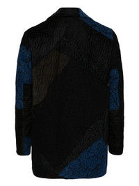 BLACK/BLUE SILK COLOUR-BLOCK DESIGN NOTCHED LAPELS FRONT BUTTON FASTENING LONG SLEEVES STRAIGHT HEM