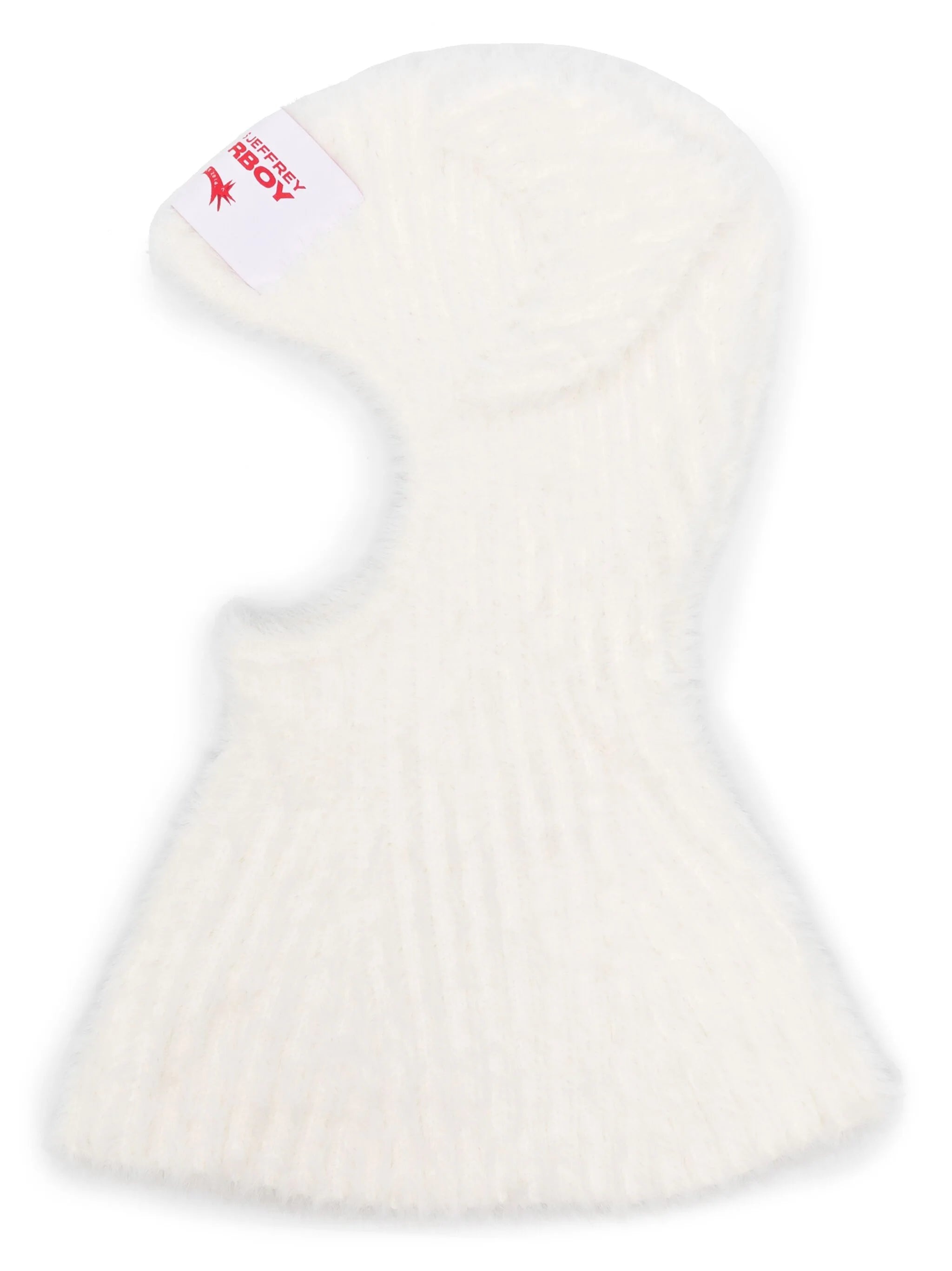 WHITE RIBBED KNIT BRUSHED EFFECT POP-UP ANIMAL EARS PULLOVER DESIGN LOGO PATCH TO THE FRONT FACE OPENING