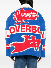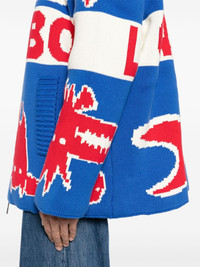 RED/WHITE/BLUE COTTON FRONT ZIP FASTENING KNITTED CONSTRUCTION PATTERNED JACQUARD TWO SIDE WELT POCKETS LONG SLEEVES DROP SHOULDER STRAIGHT HEM