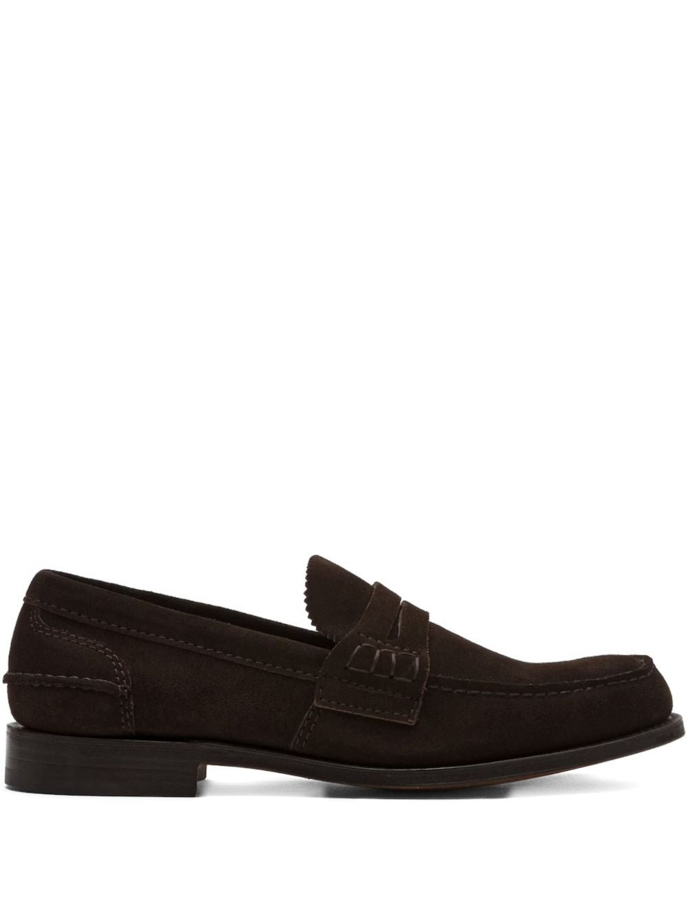THE PEMBREY RODEO LOAFERS BLEND DARK BROWN CALF SUEDE AND CALF LEATHER FOR A SOPHISTICATED, TEXTURED FINISH. FEATURING A ROUND TOE AND SUBTLE PIPED-TRIM DETAILING, THEY OFFER REFINED ELEGANCE WITH A MODERN TOUCH. THE LOW BLOCK HEEL PROVIDES COMFORTABLE SUPPORT, WHILE THE BRANDED INSOLE ENSURES LASTING COMFORT THROUGHOUT THE DAY. IDEAL FOR ELEVATING BOTH CASUAL AND FORMAL ENSEMBLES.