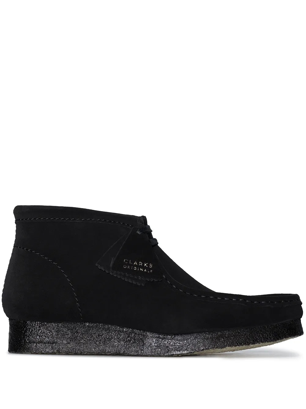CRAFTED FROM BLACK SUEDE, THESE WALLABEE BOOTS FEATURE A DISTINCTIVE SQUARE TOE AND A FRONT LACE-UP FASTENING FOR A SECURE FIT. THE ANKLE-LENGTH DESIGN IS ENHANCED BY TONAL STITCHING, OFFERING SUBTLE DETAILING THAT COMPLEMENTS THE SLEEK SILHOUETTE. FINISHED WITH A FLAT RUBBER SOLE, THESE BOOTS PROVIDE RELIABLE GRIP AND COMFORT, MAKING THEM A VERSATILE CHOICE FOR BOTH CASUAL AND REFINED LOOKS.