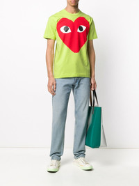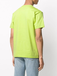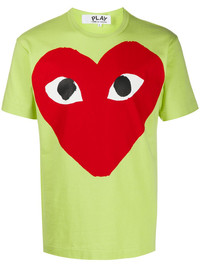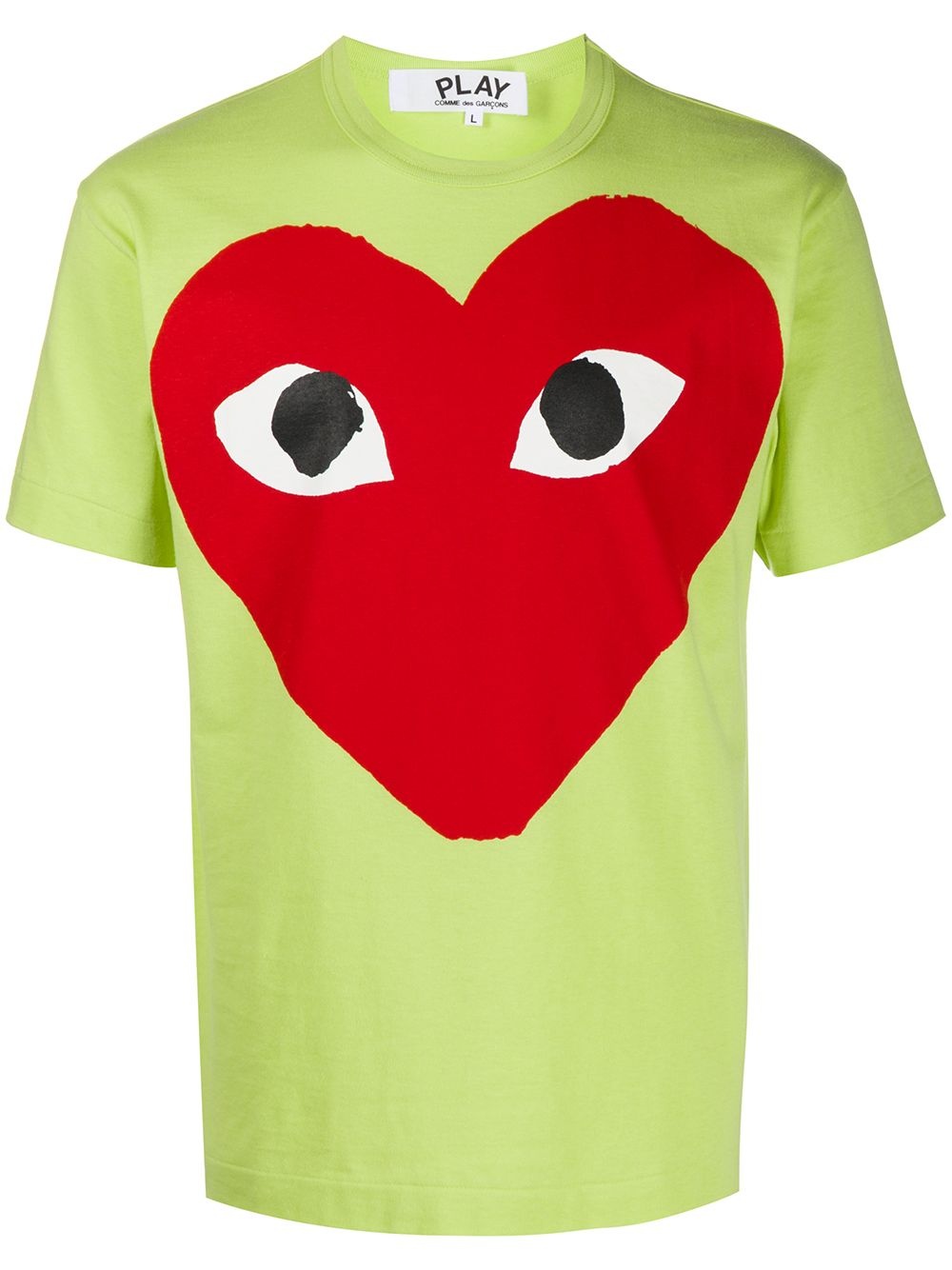 GREEN AND RED COTTON LOGO PRINT T-SHIRT FROM COMME DES GARCONS PLAY FEATURING A STRETCH FIT, A ROUND NECK, SHORT SLEEVES AND A STRAIGHT HEM.