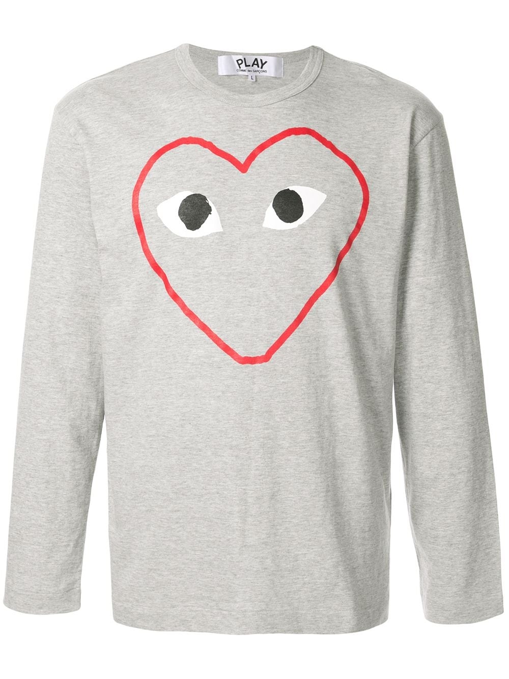 GREY COTTON PLAY LONG SLEEVES T-SHIRT FROM COMME DES GARCONS PLAY FEATURING LONG SLEEVES, A CREW NECK, A STRAIGHT HEM AND A PRINTED LOGO TO THE FRONT.