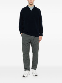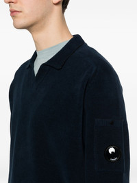 DISCOVER SOPHISTICATED LAYERING WITH THE C.P. COMPANY V-NECK POCKET-SLEEVE SWEATER IN REFINED BLUE. THE V-NECK SILHOUETTE ELONGATES THE FRAME, WHILE LONG SLEEVES FEATURE THE DISTINCTIVE SLEEVE LENS DETAIL—A SIGNATURE DESIGN ELEMENT THAT MERGES TECHNICAL INNOVATION WITH CONTEMPORARY AESTHETICS. THE POLO COLLAR ADDS STRUCTURED POLISH, AND THE RIBBED HEM ENSURES A TAILORED FINISH THAT RESISTS STRETCHING. PERFECT FOR LAYERING OVER SHIRTS OR WEARING STANDALONE, THIS SWEATER BRIDGES CASUAL COMFORT WITH ELEVATED STYLE. FOR OPTIMAL CARE AND LONGEVITY, REMOVE ANY DETACHABLE ACCESSORIES BEFORE WASHING. AN INVESTMENT PIECE THAT REWARDS REPEATED WEAR SEASON AFTER SEASON.