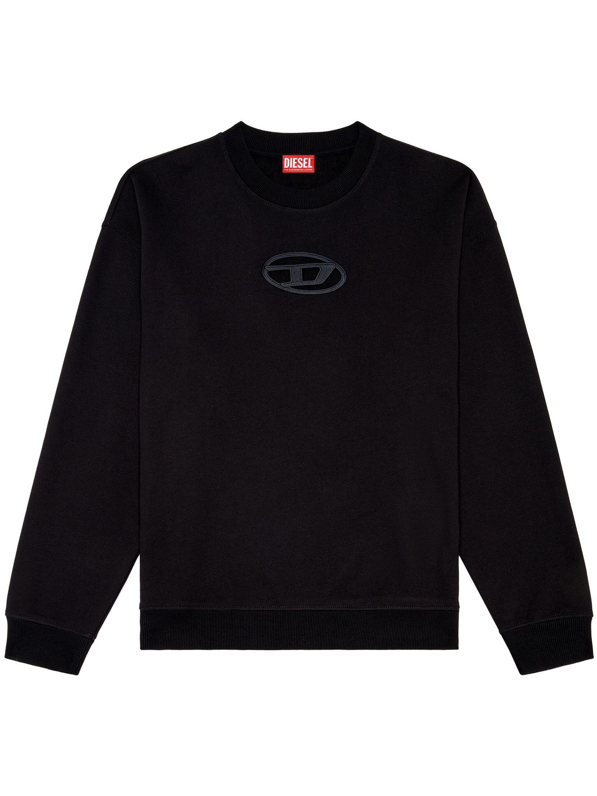 THIS BLACK SWEATSHIRT FEATURES AN ORGANIC COTTON BLEND AND RIBBED BAND COLLAR, ALONG WITH A CUT-OUT LOGO TO THE FRONT FOR A STYLISH YET COMFORTABLE LOOK. THE CREW NECK AND DROP SHOULDER DESIGN ADD A RELAXED FIT, WHILE THE RIBBED CUFFS AND HEM PROVIDE A SECURE AND COZY FEEL. ELEVATE YOUR WARDROBE WITH THIS VERSATILE AND SUSTAINABLE SWEATSHIRT.