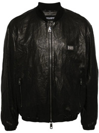 crinkled leather bomber jacket
