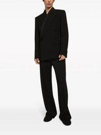 BLACK STRETCH-WOOL CONCEALED FRONT FASTENING BELT LOOPS TWO SIDE SLIT POCKETS STRAIGHT LEG