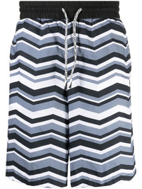 GREY COTTON ZIGZAG PRINT ELASTICATED DRAWSTRING WAISTBAND KNEE-LENGTH SLIP POCKETS TO THE SIDES TWO REAR WELT POCKETS STRAIGHT HEM